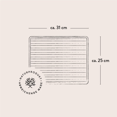 Vorsicht bei Kanten und Rissen: Produkte mit Naturrand können scharfe Kanten haben. Holz kann splittern. Beschädigte Produkte müssen entsorgt werden.