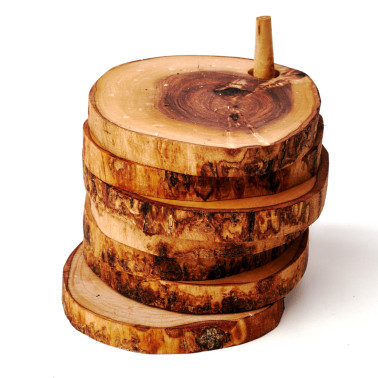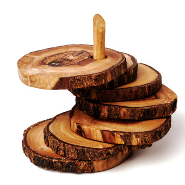 6er Untersetzer-Set aus Olivenholz – rustikal und auf Stift gestapelt
