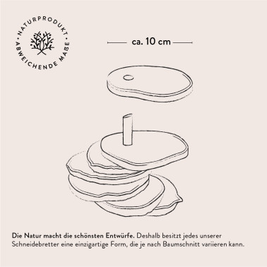 Vorsicht bei Kanten und Rissen: Produkte mit Naturrand können scharfe Kanten haben. Holz kann splittern. Beschädigte Produkte müssen entsorgt werden.