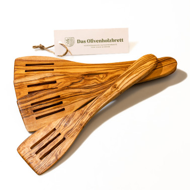 Die 3 Schlitz Version des Pfannenwenders aus Olivenholz