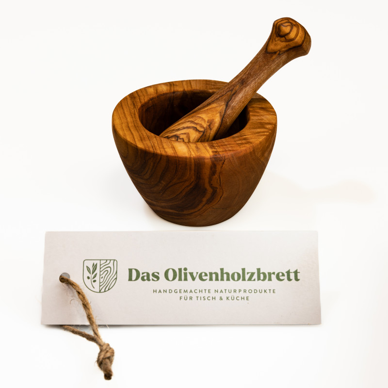 - Ein Mörser-Stößel-Set, an dem Sie lange Freude haben. Olivenholz ist besonders langlebig. Spülen Sie Mörser und Stößel einfach mit lauwarmem Wasser und ein bisschen Spülmittel ab. Nicht für den Geschirrspüler geeignet.