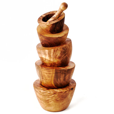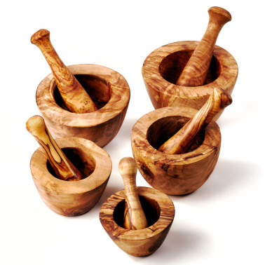 Mörser und Stößel aus Olivenholz, glatter Rand (10 cm - 18 cm)