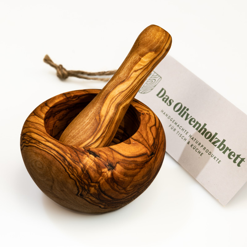 - Ein Mörser-Stößel-Set, an dem Sie lange Freude haben. Olivenholz ist besonders langlebig. Spülen Sie Mörser und Stößel einfach mit lauwarmem Wasser und ein bisschen Spülmittel ab. Nicht für den Geschirrspüler geeignet.
