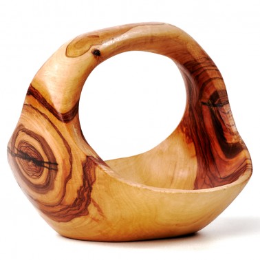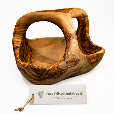 Korbschale aus Olivenholz, mit Henkel (20 cm - 45 cm)