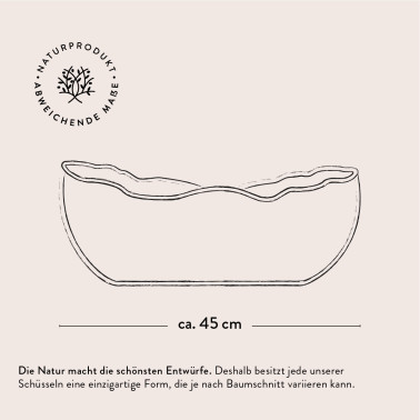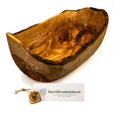 Ihre Schale aus Olivenholz mit Naturrand steht in Einklang mit der Natur. Olivenbäume werden erst für den Holzhandel freigegeben, nachdem sie keine Früchte mehr tragen. Olivenholz ist das Vorbild, was nachhaltige Produktion angeht. Ihre Schale wird nach traditionellen Methoden handgefertigt und abschließend eingeölt. Mit der Schale aus Olivenholz holen Sie sich ein wunderbares Stück Natur ins Leben! Olivenholz ist ein langlebiges Naturprodukt und punktet mit seiner antibakteriellen Eigenschaft.