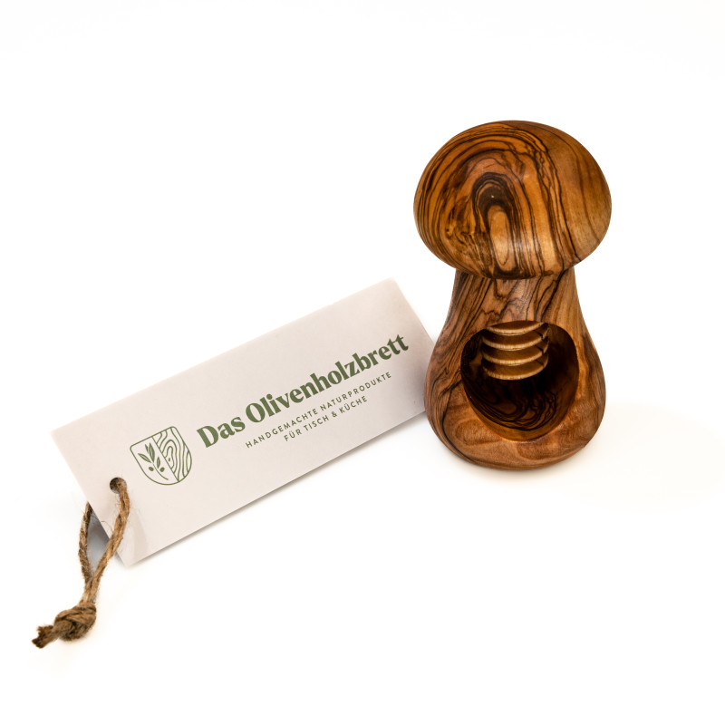 Nussknacker aus Olivenholz mit Schraubgewinde in Pilzform